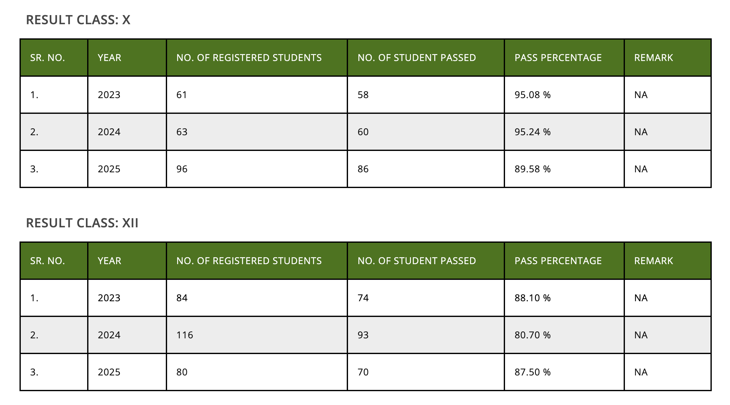 SR. NO. | YEAR | NO. OF REGISTERED STUDENTS | NO. OF STUDENT PASSED | PASS PERCENTAGE | REMARK |